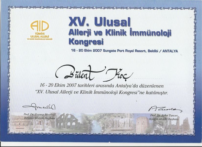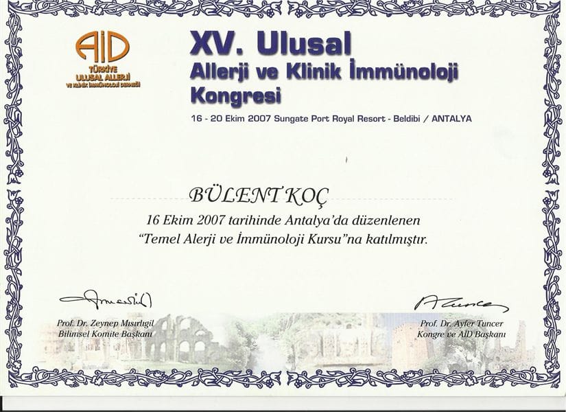 -15. Ulusal Allerji ve Klinik imminoloji Kongresi 2007/ Türkiye