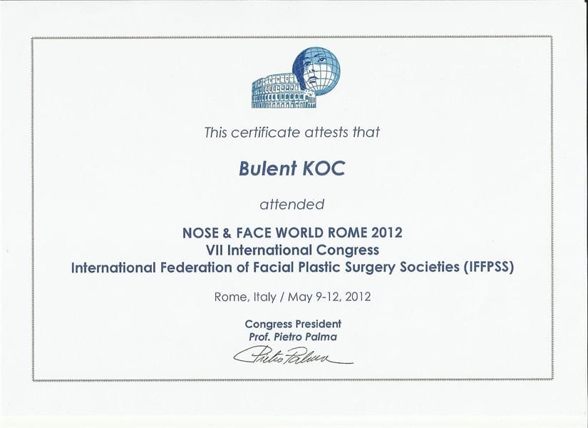 -7. Nose & Face World Rome 2012, 7. İnternational Federation of Facial Plastic Surgery Societies ( İFFPSS) Rome, İtaly/2012
