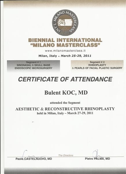 -Biennial İnternational ‘ Milano Masterclass’ Aesthetic & Reconstructive Rhinoplasty. Milano, İtaly/2011