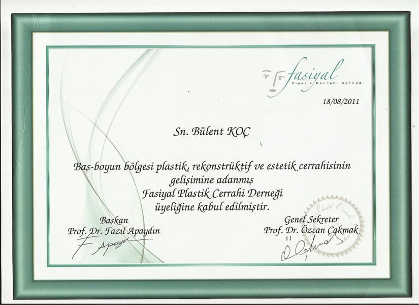 Ayrıca Avrupa ve Türkiye Yüz Estetigi Derneğinin üyesidir.
